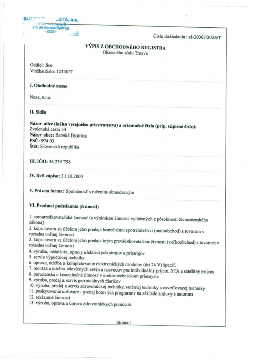 Fotokópia Výpisu OR SR (strana 1,2,3, pdf)