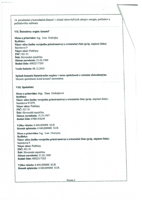 Zapísaná v OR OS TRNAVA vložka 12330/T odd. Sro